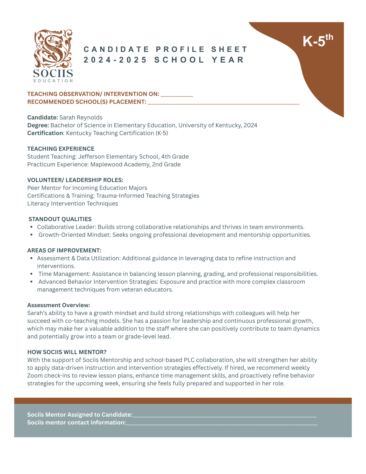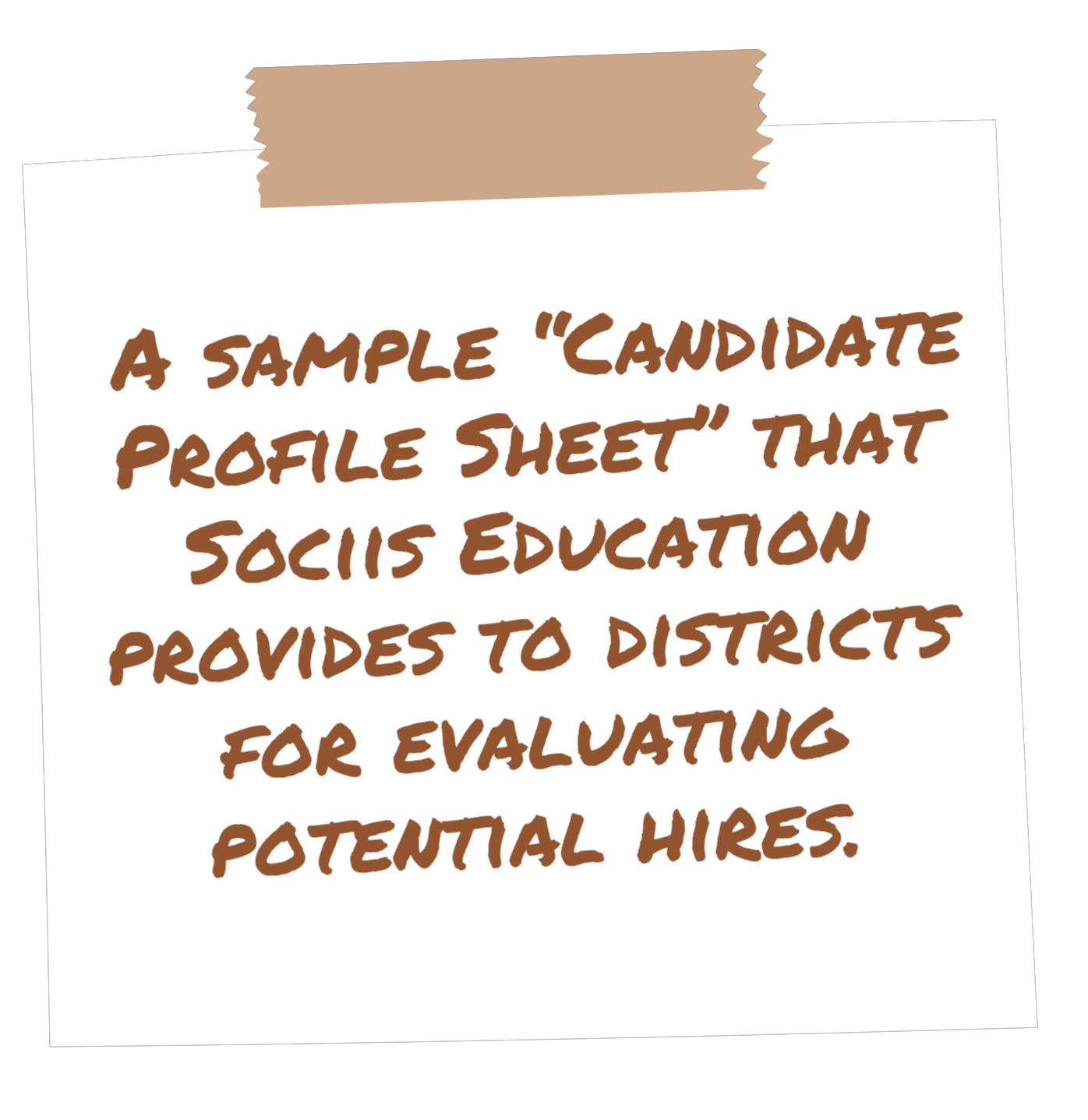 Sociis Education handles every step of the recruitment process, identifying top talent and creating detailed profile sheets for each potential hire. We ensure districts have clear insights into candidates’ skills, experiences, and strengths, making hiring decisions more seamless and strategic.